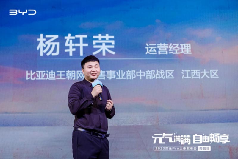 隨后,江西大區運營經理解鎖新車亮點、公布價格及購車政策,讓現場所有嘉賓對2023款元Pro有了更深層的認識。比亞迪用實際行動踐行用技術創新,滿足人們對美好生活的向往。